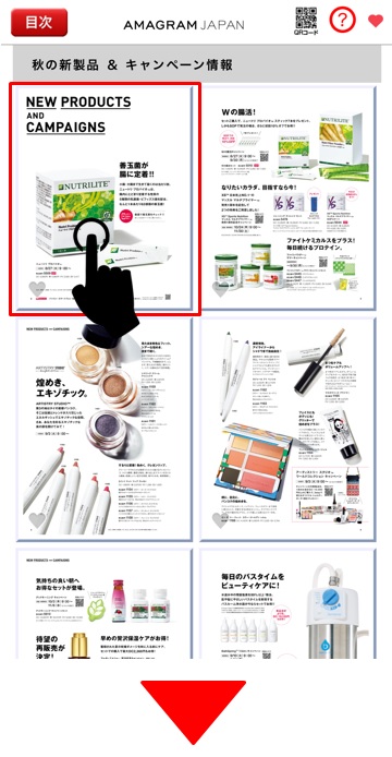 選択画面からキャンペーン詳細、製品紹介、動画などの選択ができます。