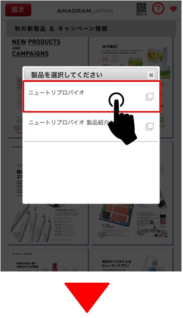 気になるキャンペーン、製品のページをタッチして選択画面を開きます。